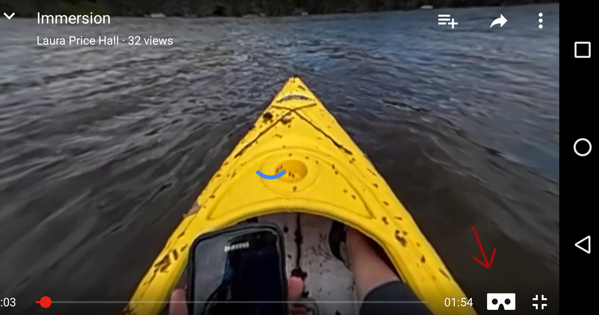 - When the video is playing on full screen, on the bottom right-hand corner of the screen next to the video controls, you should see the Google Cardboard icon: